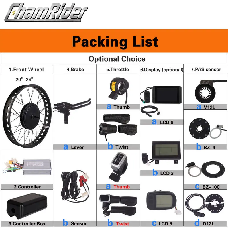 Product Name: Fett Bike Vorderrad Elektrische Fahrrad Kit 48V 1000W Schnee Bike Conversion Kit 4,0 Rad Bafang MXUS Hub Motor 20 Zoll 26 Zoll