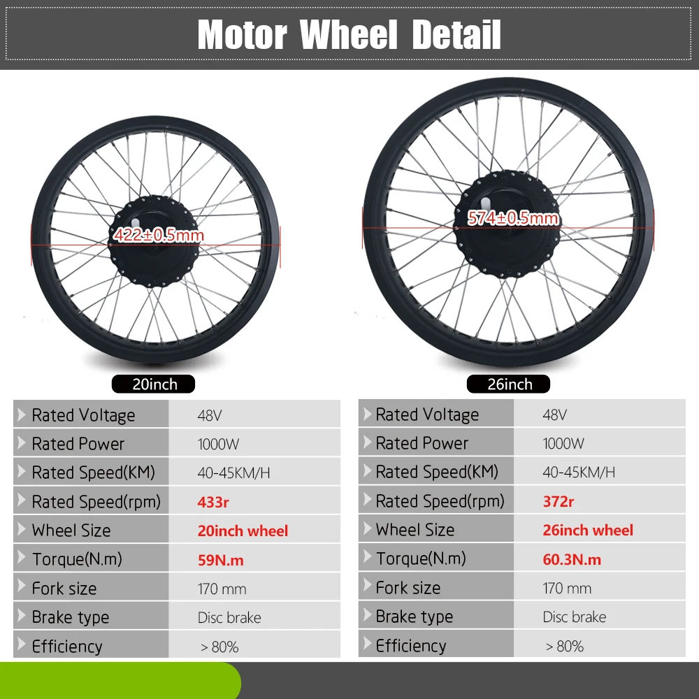 Product Name: 48V 1000W Elektrische Fett Reifen Bike Motor Rad 20 26 Zoll 4,0 Reifen Hinten Drehen Getriebe Hub Motor 4 Farbe Für Ebike Conversion Kit