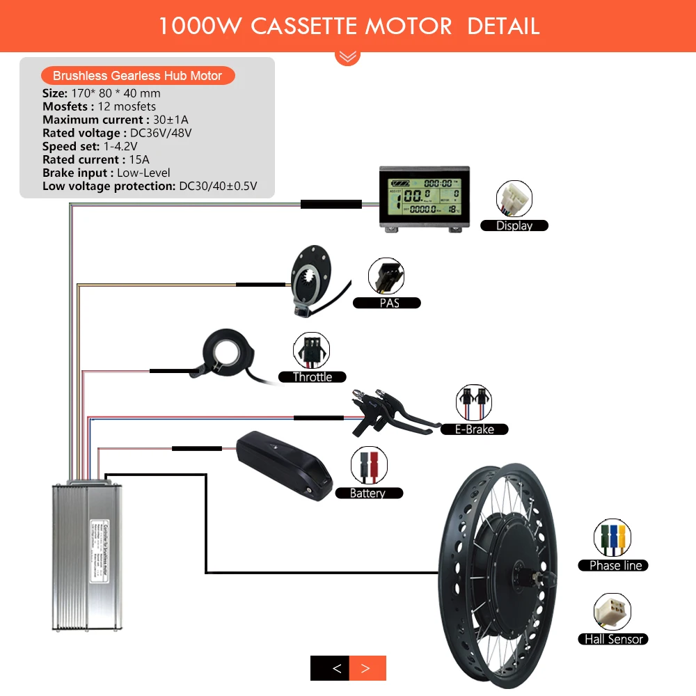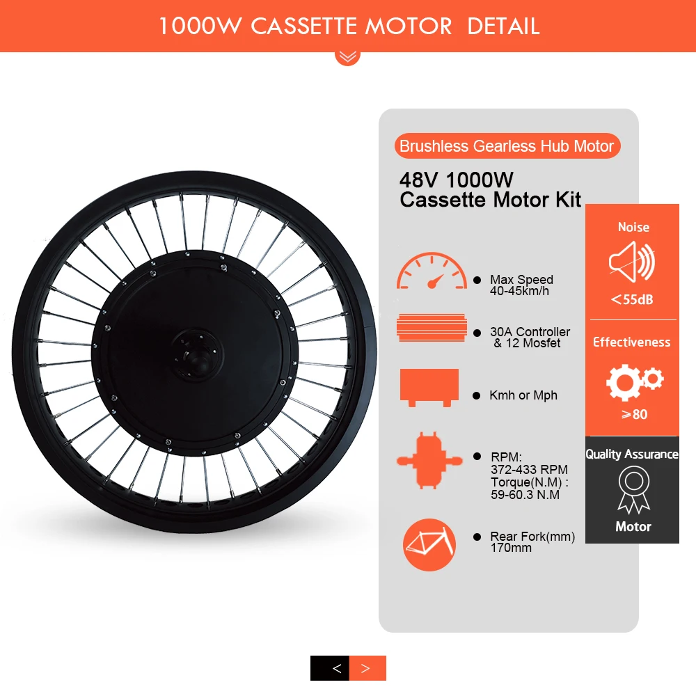 Product Name: Elektrische Bike Schnee Getriebelose Rad 20 26 Inch 48V 1000W 4,0 Fett Reifen Bürstenlosen Hinten Kassette Hub Motor Fahrrad Conversion Kit