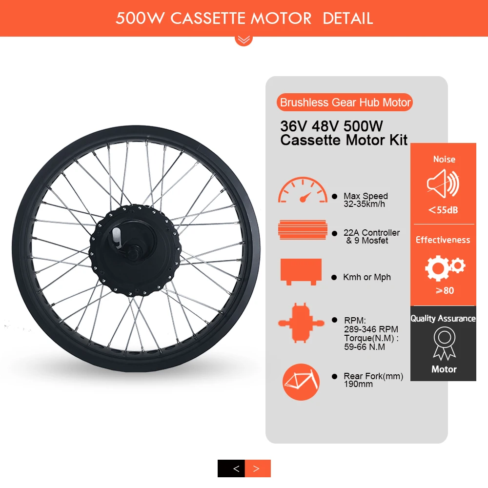 Product Name: EINES TAGES 36V/48V 500W Schnee Bike Elektro Fahrrad Conversion Kit 20 26 Zoll Rad Hinten Kassette Hub Motor Für Fett Reifen Fahrrad