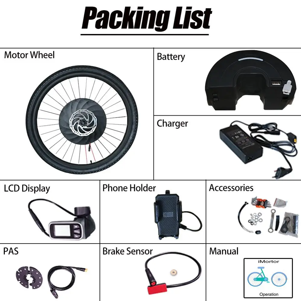 Product Name: IMortor 2 Elektrische Bike Umwandlung Mit Batterie 36V250W Ebike Conversion Kit Vorne Rad 20 24 26 700C 29 Zoll Rad Hub Motor